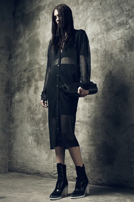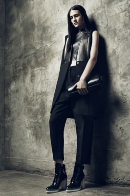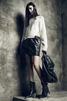The Resort 2013 Collection from Alexander Wang is soon going to be what every girl will be coveting. From the ribbed knit sweaters to the oversized trousers, Wang has once again designed a collection that oozes downtown cool with modern and grunge-y twists. For resort, Wang lightened things up a bit with less leather and lacquered pieces, in favor of lighter colors and sheer dresses. Of course in typical Wang fashion, most of the pieces are black and not for the faint of fashion heart. Wang delivers minimalist-chic with a sexy tough-girl edge once again.