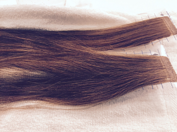 [A few of my tape-in hair extensions right before the were placed in my hair at RPZL]