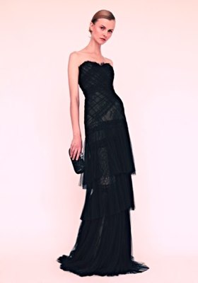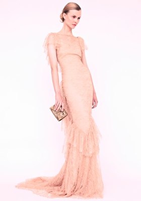 Marchesa presents Resort 2013, a collection inspired by delightful childhood memories of an English garden party. While you may not have been attending elegant soirées, you can certainly envision the free imagination and larger-than-life looks of the collection. Colorful cocktail dresses and long evening gowns find a companion in delicate, lightweight tea-length coats. Playful tulle and and laser-cut lace seem faultlessly aligned with mother of pearl accents. Divergent tones of fuchsia and blue with ivory and rose add an element of depth to this enchanting vision of a garden party, a party I’d certainly like to attend!