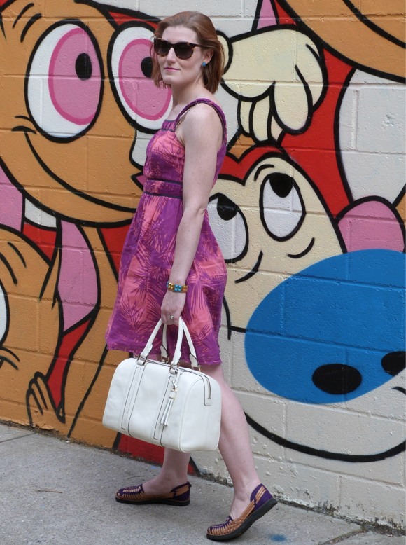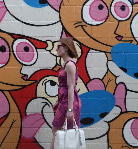 The summer is here! I couldn’t be more thrilled for warm weather-appropriate clothing and accessories, and relishing in the splendor of unexpected adventures that being outdoors more often brings. For example, the hubby and I took a detour from our normal route through Brooklyn, and drove right by this fabulous Ren and Stimpy adorned wall. We stopped for an impromptu photo shoot, unable to resist the cool ’90s throwback and the vibrant colors in the art that were, coincidentally, a great match for what I was wearing.