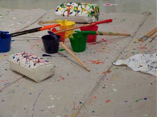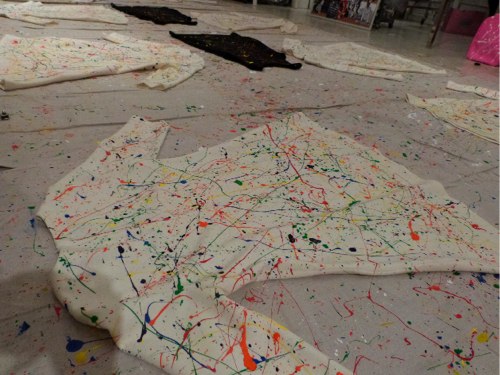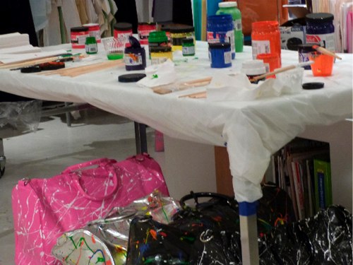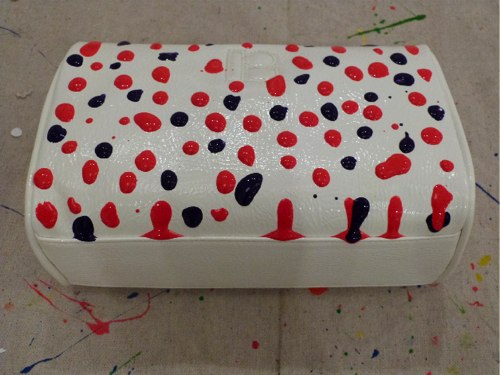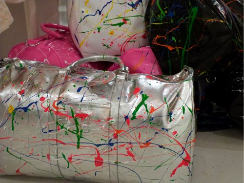 Lisa Perry’s new SPLATTER collection will donate 20% of all proceeds from its sales to Publicolor, and held an event for me to experiment with the technique get my own splatter on. I chose a white Lisa Perry makeup bag to execute my aesthetic of two-toned slightly drippy dots, rather than the mid-century artist/Jackson Pollock-inspired pieces that Perry and her team had decorated onto dresses, tops, dinnerware, bags, and more. Click through the slideshow to see the hand-created looks, as well as my piece, which I get to keep (and I think will give to my mom). Click here to shop the Lisa Perry collection and here to learn more about Publicolor.