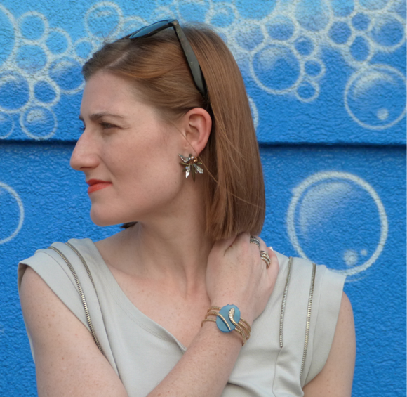 Speaking of, it’s apparently my new thing, as this Isharya wire cuff features something of the serpentine persuasion, artfully wrapped around an agate stone as the center piece. I’ve been a big fan of blue agate for some time now, and snakes — well, I like looking at the imitation of life iteration of them.