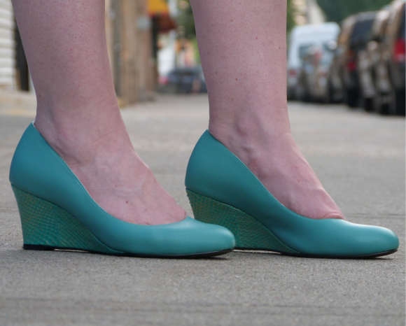 New to my accessories game is Shoes of Prey, an innovative concept in which you can design your own pair, down to the smallest of details. You can of course order online, but the really exciting news is that you can create a pair right inside of Nordstrom! The Shoes of Prey Design Studio at Nordstrom is found in six locations, equipped with iPads and sample shoes to try on to get a feel for the the heel height, comfort, and sizing. There’s a dizzying array of fabric swatches to pick through so that you can ensure the perfect color and texture, and the shoes will be made-to-order, arriving at your doorstep in 4-5 weeks. I modeled my Shoes of Prey after a very much loved, but very worn pair in my closet that I didn’t want to say goodbye to, but were literally falling apart. Talk about a combo of the old meets the new! My beloved shoes were reincarnated into a Shoes of Prey style that featured a similar low heel and rounded toe, but with a pop of embossed exotic snakeskin added.