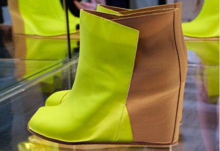 Walking the line between casual, edgy, and an all- encompassing Parisian aesthetic, MM6 Maison Martin Margiela for spring 2013 was a mixture of neon footwear, lucite accessories, must-have handbags, and muted pastels and neutrals. No shape was overly body conscious, but rather took on loose, flowing forms, perfectly layered to show off the mastery of each piece’s cut. We’re putting money on the shoes, particularly the orange sneakers, as the blockbuster items from the collection for spring. Click on the slideshow above to view our top nine favorite looks.
