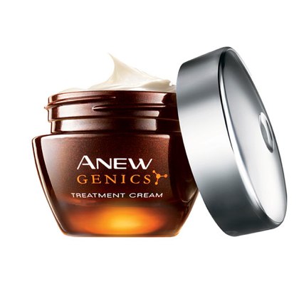 CaptionAvon ANEW GENICS Treatment Cream, $38, includes patented YouthGen™ Technology, inspired by the Youth Gene, designed to stimulate each user's Youth Gene’s activity. Let it seep in overnight.