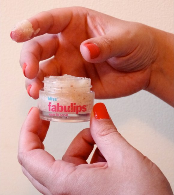[The Fabulips Sugar Lip Scrub in action, modeled here by my fabulous friend Laurie Sharpe]