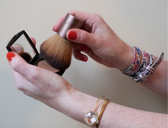 The goal is to apply bronzer where the light/sun would naturally hit you, so lightly apply to temples and along the hairline, cheekbones,and with what’s left over, a light all-over swipe on your neck will do.